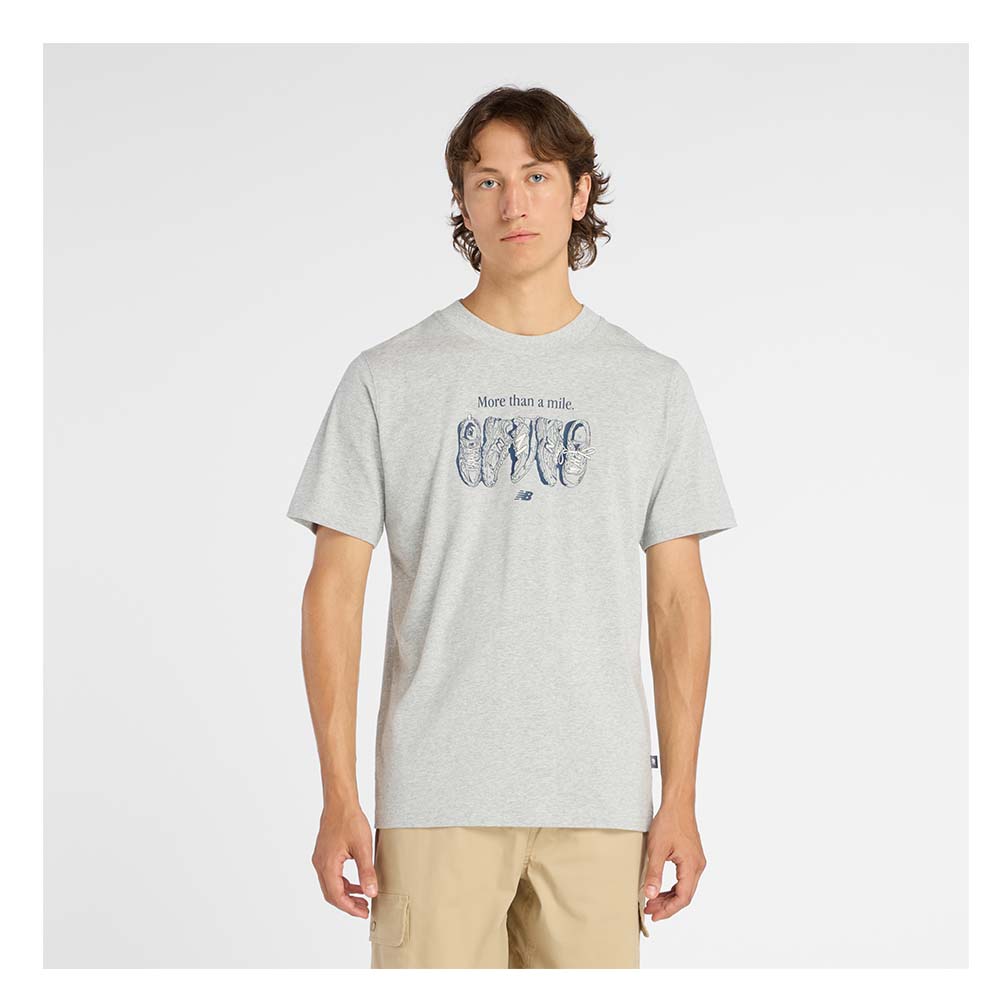 Miesten tyylikäs t-paita vapaa-aikaan. Rinnassa siisti ”more than a mile” printtilogo.